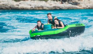 Jobe Rodeo Trainabile 3PQuesto non è il nostro primo Rodeo! Presentiamo il Jobe Rodeo Trainabile 3P! Aspetta cowboy, questo tubo da barca è costruito per il divertimento. Dotato di una copertura in nylon da 840 denari super resistente con doppia cucitura e 8 maniglie super comode, il Rodeo trainabile è costruito per durare.