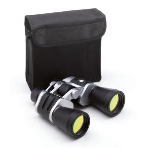 Binocolo 10 x 50 mm. antiurto con rivestimento protettivo in gomma. Prodotto di ottima qualità ad un prezzo molto contenuto fornito di custodia con tracolla e protezioni per le lenti.