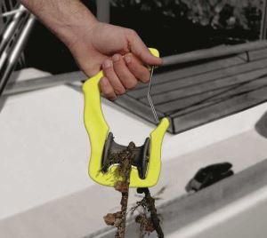Grazie al rullo largo 7 cm si possono recuperare cime e sagole dall'acqua ed accompagnarle fino al punto d'ormeggio con mano singola. Nel caso di murate alte si lega ad una cima.