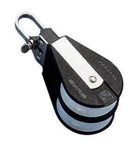 Bozzelli con sfere in acciaio inox serie rinforzata. Testa universale (tre posizioni) - in linea, trasversale, girevole Bozzello a puleggia doppia