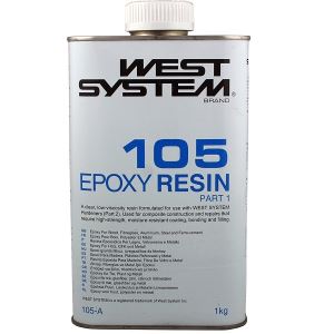 West System 105 - Resina epossidica a bassa viscosita' - color ambra chiaro - puo' essiccare in un campo di temperature molto vasto - forma un solido di alta resistenza e rigidita' che ha eccellenti proprieta' adesive - e' un validissimo collante ed un'ottima barriera contro il passaggio di umidita'