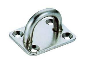 Piastrina in acciaio inox AISI 304 a base rettangolare e ponticello saldato.