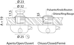 Serrature in plastica per portelli e cassetti con doppia chiusura e antivibranti, complete di pulsante in ottone cromato.