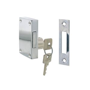 Serratura da appoggiare in ottone cromato con pomolo di chiusura dall'interno.