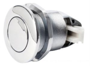 Scrocco a pulsante in zama cromata, completo di battuta in nylon.
