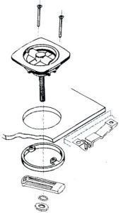 In nylon + ottone cromato. Fissaggio con due viti su pannelli spessore mm 6-16, completo di fermo a scatto.