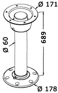 La colonna si avvita sulla base con ingegnoso sistema "Thread lock" estremamente stabile. La base si fissa al pagliolo senza incasso,