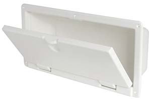 Sportelli con cerniera in acciaio inox e chiusura a pomello.