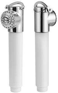 Doccia in ottone cromato, vano di alloggiamento bianco in ASA UV resistente.