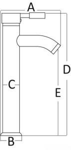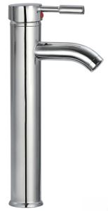 Rubinetto in ottone cromato. Da usare con lavabo sporgenti applicati sul piano.