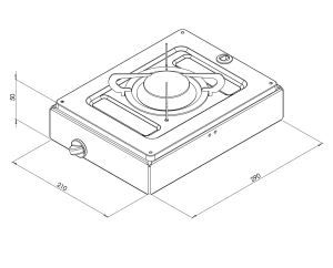 Fornello 1 fuoco. In acciaio inox lucidato a specchio. Dotato di squadrette di fissaggio. Il bruciatore e fornito di termocoppia (valvola di sicurezza). Dimensioni: mm. 210x290x90 h.