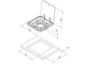 Dimensioni: Larghezza mm. 450 - Profondità mm. 450 - Altezza esterna mm. 130 - Altezza interna mm.45 - Peso kg. 6,4