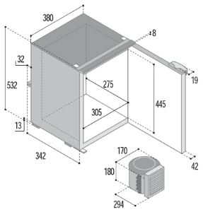 Il frigo-freezer C42LX OCX2 in acciaio inox della serie OCX2 si presenta come una soluzione ideale, grazie alla sua capacità totale di 42 litri, con la possibilità di avere un vano freezer da 3,6 litri se scelto tra le opzioni disponibili. È dotato di un'unità refrigerante esterna.