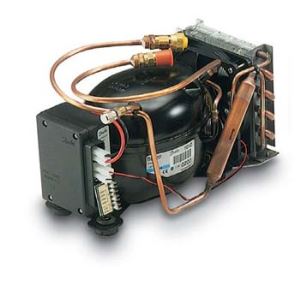 Gruppo refrigerante Danfoss ad alimentazione automatica 12-24 volt e viene fornito in pressione d'azoto. Basso consumo energetico. Basso livello di rumorosità e funzionamento fino ad inclinazioni di 30 gradi. Possibilità di variare la velocità del compressore in funzione del volume da raffreddare. La centralina elettronica, parte integrante del compressore, ne gestisce l'avviamento e il funzionamento. Inoltre sono dotati di dispositivo di protezione della batteria che evita la scarica oltre un livello minimo di sicurezza. Il gruppo viene fornito precaricato di gas e giunti rapidi per il collegamento immediato dell'evaporatore. Adatto a frigoriferi con volume fino a 300 litri e congelatori con volume fino a 100 litri. Su richiesta possono essere dotate di giunti rapidi e di alimentazione supplementare a 100 / 240 Vac. In base alla tipologia di impianto refrigerante, l'alimentazione in corrente alternata può essere fornita tramite una centralina elettronica (12-24 / 100-240 Vac 50/60 Hz) applicata sul compressore oppure mediante un alimentatore esterno a commutazione automatica.
