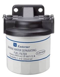 Filtro separatore acqua / carburante completo di supporto in alluminio verniciato, raccordi con portagomma diametro 10 mm e cartuccia da 10 micron.