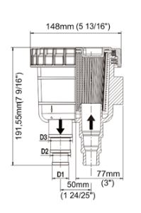 Filtro acqua portata 300 lt con portagomma Ø 25-32-38