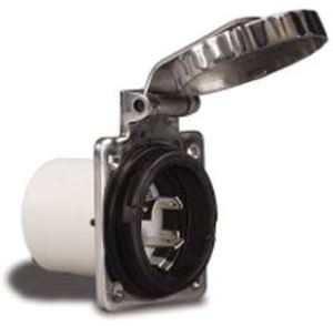 Presa di corrente ad incasso in acciaio inox 316 originale Marinco per allacciamento corrente dalla barca alla banchina, completamente a tenuta stagna.