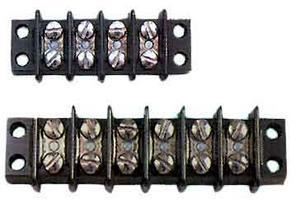 Blocchetti connettori ad alto isolamento in bachelite nera e morsetti con viti in ottone nichelato provvisti di separatori per evitare contatti accidentali a 6 terminali