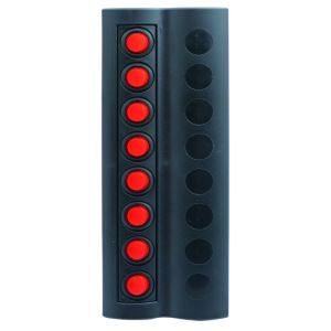 Pannello elettrico in plastica nera con interruttori basculantI, luce a LED per indicare la linea attiva e magnetotermici di protezione sovraccarico. Alimentazione a 12 vdc.