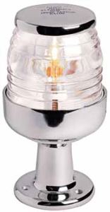Fanale in acciaio inox con base bianca 360°, ideale per imbarcazioni minori di 20 metri.