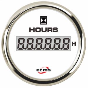 Strumentazione Ecms White Chrome 9-32V completa di cavetti con connettore Molex, cornice in Acciaio Inox 316 con finitura cromata e frontalino impermeabile IP67 con lente bombata anti-appannamento. Quadrante retroilluminato con luce LED personalizzabile in vari colori.