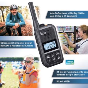 IC-U20SR è un ricetrasmettitore portatile UHF PMR446 analogico particolarmente resistente e dalle ottime prestazioni.