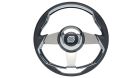 Volante barca a 3 razze con impugnatura in poliuretano effetto pelle con inserti silver, razze alluminio silver, cover silver e verniciatura nera.