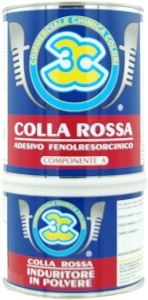 Colla rossa marina per legno. - Red marine glue for wood.