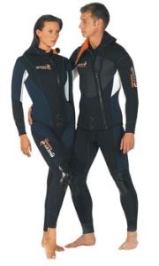 La muta classica, per tutte le vostre immersioni. - Giacca Neoprene 5 mm Cerniera al viso protetta da unampia patta interna, per evitare le infiltrazioni Cappuccio integrato e guarnizione viso in glide skin Guarnizioni in glide skin, per facilitare la vestizione e la svestizione, garantendo allo stesso tempo unottima tenuta Pannelli in Tatex sul petto e sulla schiena, per un'asciugatura più veloce (solo versione uomo) - Long John Cerniera anteriore, per una migliore vestibilità Guarnizioni in glide skin alle caviglie Ginocchiere anatomiche in poliuretano
