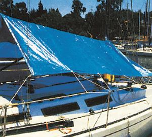 Teli occhiellati fabbricati in tessuto impermeabile di polietilene con trattamento antimuffa.