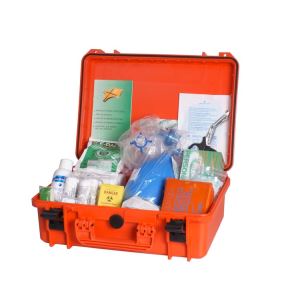 D-KIT valigetta pronto soccorso nautico secondo normativa D.M. 10/03/2022, G.U 108 10/05/2022 TABELLA D (escluse le specialità medicinali) certificata IP67 per garantire una resistenza all'acqua ed alle polveri, per una sicura protezione del contenuto agli agenti atmosferici. Dotata di guarnizione ermetica valvola automatica di pressurizzazione manico morbido per una presa sicura chiusura di sicurezza a doppio step doppia predisposizione lucchetto cerniera lungo tutto il profilo della valigia con perni in nylon.