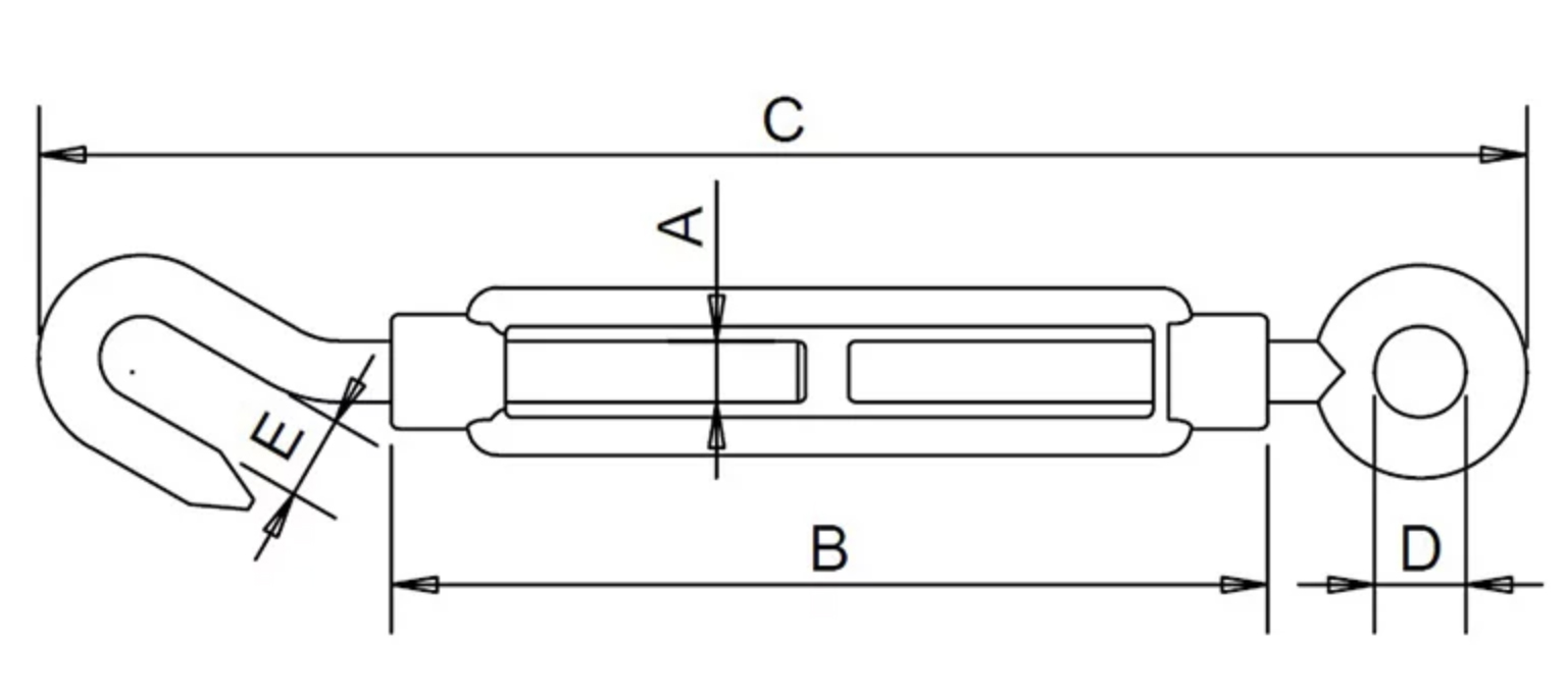 Tenditori in acciaio inox AISI 316 A occhio più gancio