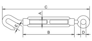 Tenditori in acciaio inox AISI 316 A occhio più gancio