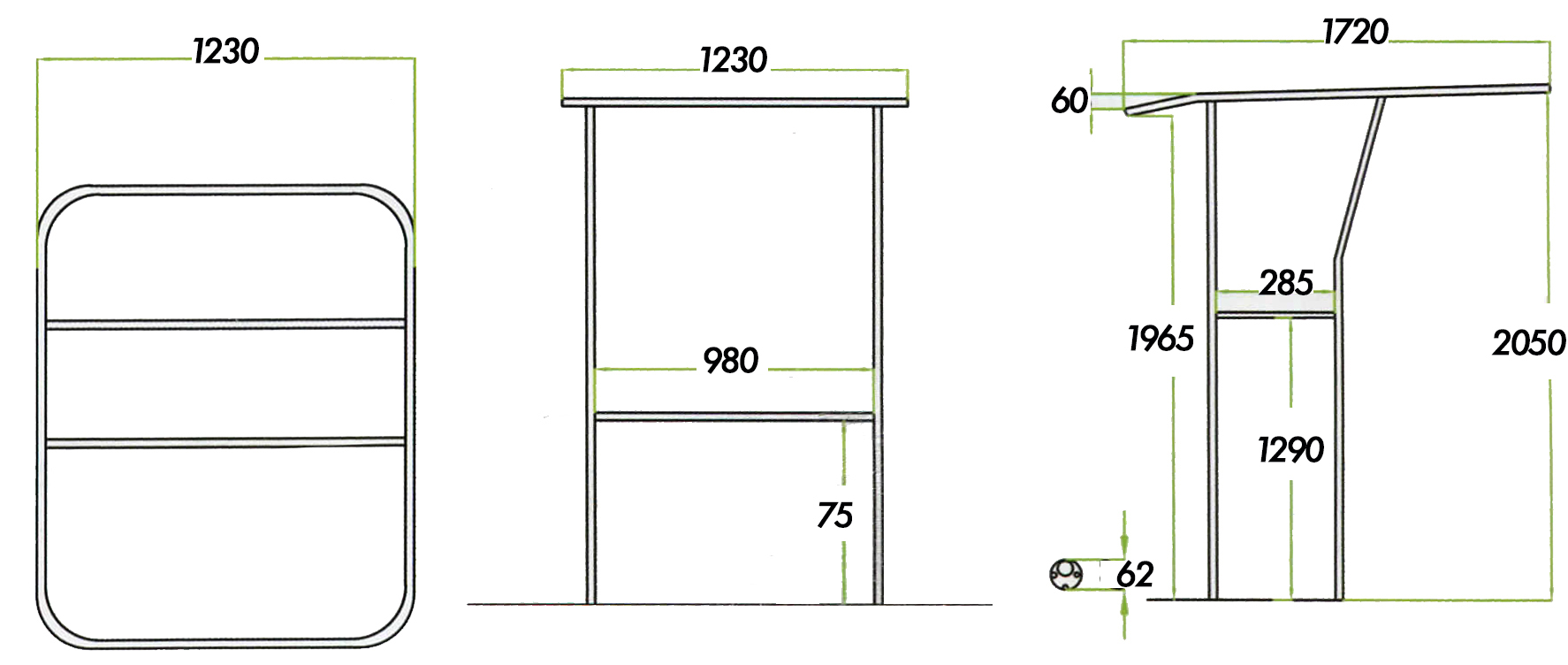 Il tessuto del Top è in poliestere blu, impermeabile ed UV resistente ed è smontabile.