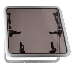 Le guarnizioni in neoprene e le maniglie di chiusura garantiscono una sicura tenuta in qualsiasi condizione, mentre la lastra in PMMA dello spessore di 10 mm è disponibile nella colorazione standard grigio fumè.