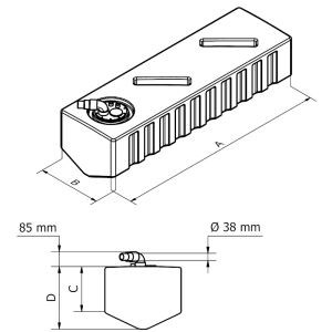 Serbatoi in polietilene alta densita', adatti agli acidi e ai carburanti, completi di boccaporto di ispezione senza indicatore. Il boccaporto è dotato di tappo con sfiato, pescante, portagomma 3/8" per sfiato aria, è inoltre predisposto per il montaggio dell' indicatore di livello elettrico o meccanico, portagomma da 1/4" per un secondo pescante per bimotore o diesel per installazioni fisse.