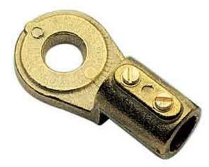 Terminali ad occhio in ottone fuso per cavi batterie. ø occhio mm.