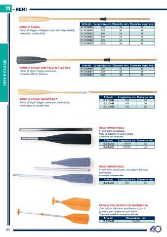 REMI E PAGAIE REMO DI LEgNO cON pALA IN pLASTIcA 11.010080 185 43 36