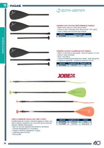 JOBE ALuMINIuM pAgAIA Sup LIME 3 pARTI Articolo Lunghezza cm. colore