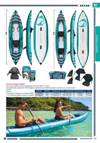 1 o 2 sedile per kayak (in base al modello) 12.018331 410 2 personne 200 max. kg. 410x90 13 kg.